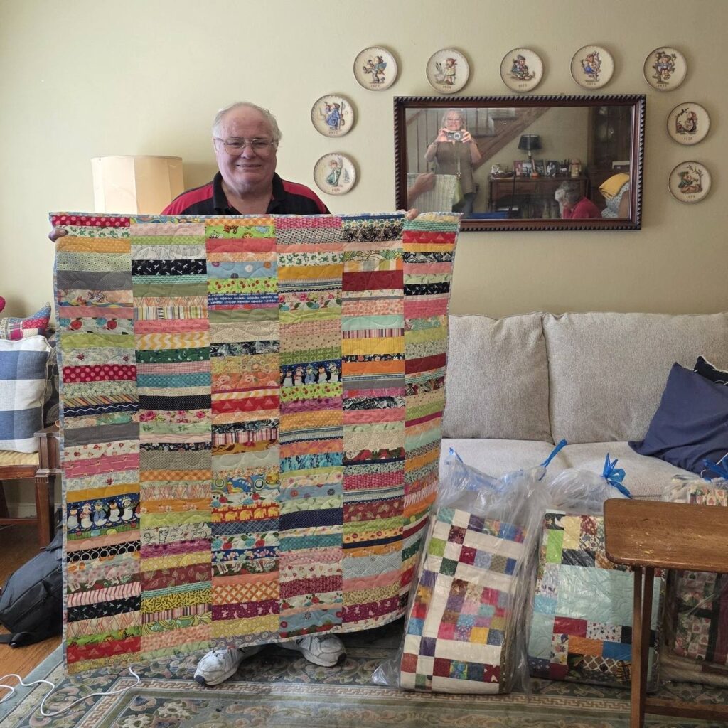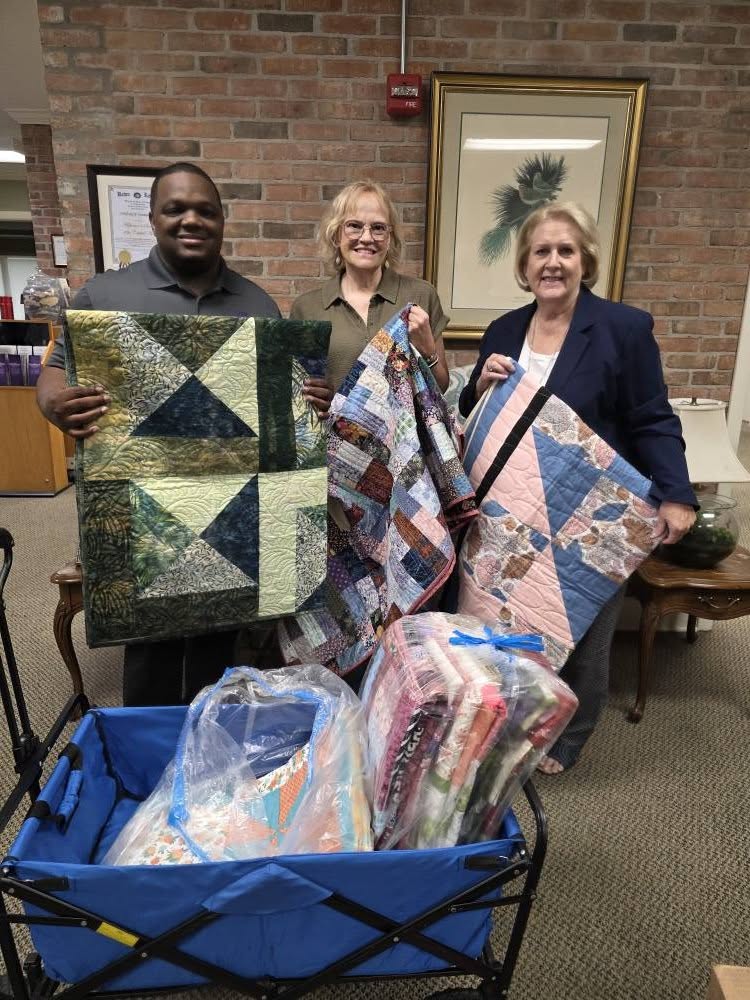 Your handiwork is out in our communities bringing cheer and comfort. Seven organizations received a total of 84 quilts this past week. ALS Association also received quilts, but we were unable to get a picture that day.